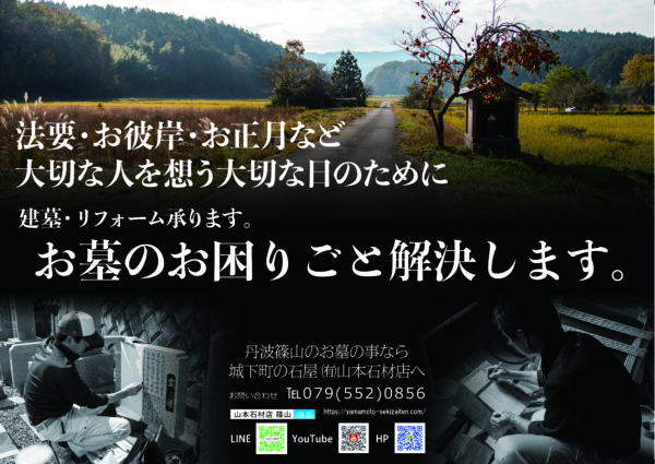 山本石材店は丹波篠山にて1933年(昭和8年)に開業し、墓石・石碑専門店として地域に親しまれています。