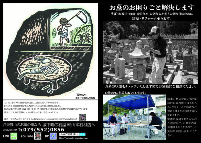 Home › 2007チラシ_表 2020-07-17 2007チラシ_表 有限会社 山本石材店 墓石のことならお任せください! 終活・生前整理のご相談なども! 住所 〒669-2322兵庫県丹波篠山市呉服町59-11 営業時間 月〜日: 9:00 AM – 5:00 PM (定休日 火曜日) 関連記事 台風の風の通り道… 丹波篠山 有限会社 山本石材店について 石屋日和♪ いまできること 墓石の種類 2007チラシ_表
