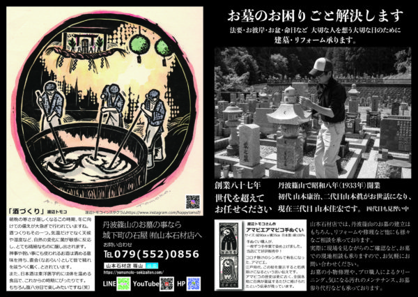 Home › 2011チラシ_表 2020-11-13 2011チラシ_表 有限会社 山本石材店 墓石のことならお任せください! 終活・生前整理のご相談なども! 住所 〒669-2322兵庫県丹波篠山市呉服町59-11 営業時間 月〜日: 9:00 AM – 5:00 PM (定休日 火曜日) 関連記事 閉眼供養のご連絡。 霊標文字彫りをする前には! 生前整理♪ 明日は 二十四節気「大雪」 当店のホームページへようこそ! 2011チラシ_表