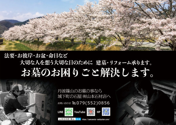 Home › 202001057チラシ_表 2020-03-06 202001057チラシ_表 有限会社 山本石材店 墓石のことならお任せください! 終活・生前整理のご相談なども! 住所 〒669-2322兵庫県丹波篠山市呉服町59-11 営業時間 月〜日: 9:00 AM – 5:00 PM (定休日 火曜日) 関連記事 ㈲山本石材店 2018 夏の思い出 ② いまできること 春のお彼岸にむけて 折り込みチラシ 丹波篠山人の密かな愉しみ~節分~ 202001057チラシ_表