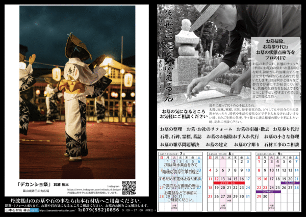 Home › 2407チラシ_表 2024-07-19 2407チラシ_表 有限会社 山本石材店 墓石のことならお任せください! 終活・生前整理のご相談なども! 住所 〒669-2322兵庫県丹波篠山市呉服町59-11 営業時間 月〜日: 9:00 AM – 5:00 PM (定休日 火曜日) 関連記事 丹波篠山 有限会社 山本石材店について デカンショ節 歌碑♪で供養 小さな納骨袋 折り込みチラシ 空調服に感動 2407チラシ_表